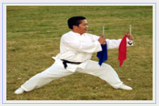 Master Xu demonstrates Bagua Zan -“Shuang Long Xi Zhu” pose”